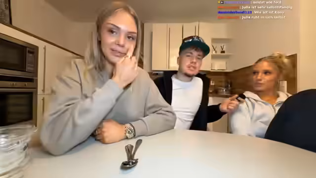 02:01:56Die Kochsession nimmt Fahrt auf, während die Streamer über das weitere Vorgehen bei der Zubereitung der Nudeln diskutieren. Währenddessen stellt Julia einen roten Linseneintopf her. Nebenbei sprechen sie über persönliche Pläne für die nahe Zukunft, wie ein mögliches Date am Valentinstag und das Drehen eines neuen YouTube-Videos. Es wird auch die Möglichkeit erwähnt, gemeinsam ins Fitnessstudio zu gehen, um Inhalte für einen Kanal zu produzieren. Die gesamte Atmosphäre ist entspannt und familiär, mit viel Interaktion im Chat und gemeinsamen Lachen über die kleinen Missgeschicke während des Kochens.