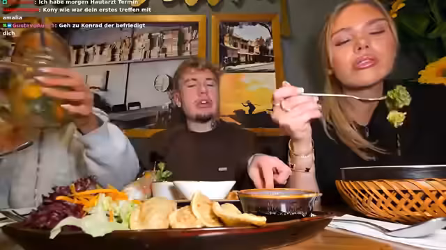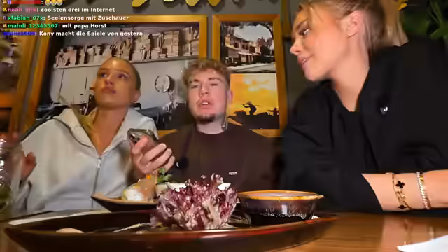 00:00:00Der Stream beginnt mit einer unkonventionellen Begrüßung und kleinen technischen Unannehmlichkeiten. Konygebony begrüßt seine Zuschauer und erwähnt, dass er von einem Date kommt und daher etwas 'rallig' wirkt. Seine Begleiterin Amalia und eine weitere Person sind anwesend. Sie planen, einen gemeinsamen Stream während des Essens in einem asiatischen Restaurant in Münster zu machen, das sie ihren Zuschauern noch nicht vorgestellt haben. Zunächst gibt es jedoch Probleme mit dem WLAN und der Mikrofonanlage, die gelöst werden müssen, damit der Stream reibungslos starten kann.