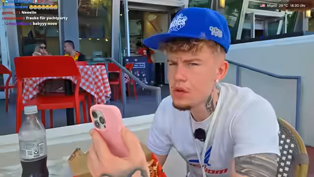 00:52:10Ein wiederkehrendes Motiv im Stream ist die Inszenierung des Streamers als größten Star Amerikas und Deutschlands. Er äußert sich selbstbewusst und cocky: 'Ich bin der größte Star Amerikas, Chat, vergess das niemals. Vergleicht mich mit Drake, vergleicht mich nicht mit irgendwelchen Opfern.' Er nutzt seine Aufenthalte in Miami, um diesen Status zu unterstreichen und zu zeigen, dass er überall und mit jedem beliebigen Menschen reden kann.