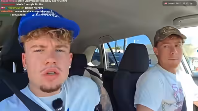 02:57:31Aufgrund der technischen Probleme und der lauten Umgebung entscheidet sich der Streamer, sich vorzustellen. Er stellt Nikolas Lazariidis vor, der ihn fährt. Gleichzeitig wird eine andere Person im Auto erwähnt, die als 'No-Name' bezeichnet wird und die sich vorstellen darf. Es wird ein Konflikt zwischen dem Wunsch des Streamers, an verschiedenen Orten in Miami zu bleiben, und dem des Fahrers, der ihn irgendwo absetzen möchte, angedeutet. Der Streamer betont seinen Wunsch nach weiterer Interaktion mit dem Chat.
