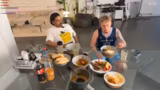 00:20:14Eine schlecht gewordene Melone wird aus dem Menü gestrichen und stattdessen ein Bananen-Shake und Obstsalat zubereitet. Während des Mixens kommen persönliche Gespriche auf. Streamer und Sami tauschen sich über ihre Lieblings-YouTuber wie Bernzena und Abu Goku aus und diskutieren mögliche zukünftige Kooperationen. Auch persönliche Interessen wie das Sammeln von Kors-Figuren und Bear Bricks werden erwähnt.