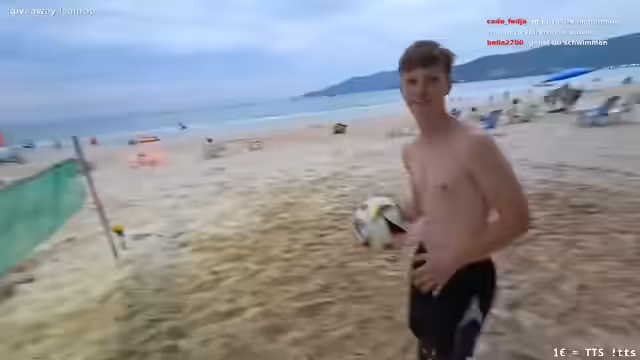00:30:06Ein spontanes Fußballspiel am Strand wird organisiert. Der Streamer, der anfangs im Sand Schwierigkeiten mit dem Jonglieren hat, verbessert sich mit der Zeit und zeigt einige gelungene Aktionen. Einzelspieler werden gelobt, insbesondere ihre Kopfballstärke. Nach dem Spiel geht die kleine Gruppe auseinander und der Streamer beschließt, die Umgebung weiter zu erkunden und auf der Suche nach Abenteuern weiterzuziehen.