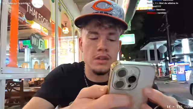 05:58:32Der Stream beginnt im thailändischen Bangla Road mit einem Fokus auf das Umfeld und die Menschen, die vorbeilaufen. Die Streamer beobachten die Passanten, analysieren deren Verhalten und Nationalitäten, und diskutieren die allgegenwärtige Anwesenheit von Touristen und Polizei. Dabei wird auch der Verkauf von Drogen angesprochen und die strengen Gesetze in Thailand betont, die zu harten Strafen führen. Streamer und Merlin vergleichen die Lebensqualität und die Möglichkeiten in Thailand mit Deutschland, wobei Thailand für seine entspannte Atmosphäre, gutes Wetter und geringere Kosten außerhalb von Phuket gelobt wird.