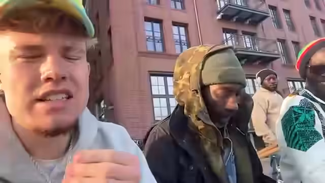 01:13:41Der Streamer ruft Aurelia an, um sich zu treffen. Sie verabreden sich für den nächsten Abend. Anschließend begegnet er zwei Männern, Beifal und Slay, aus Senegal. Er unterhält sich mit ihnen über ihre Musik- und Veranstaltungskarriere und bietet ihnen an, bei einem Livestream zu helfen, um ihre Kunst zu verbreiten. Die beiden lehnen dies jedoch ab.