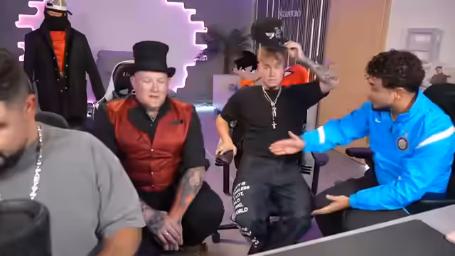 01:35:38Als klassischer Karten-Zaubertrick zieht Kony eine Karte, die mit 'Raw Season' beschriftet ist. Nach einer kurzen Unterbrechung, in der Abi die Karte scheinbar 'küsst', verschwindet die Karte. Beim Versuch, sie wiederzufinden, greift Kony in seinen Mund, was als Running Gag im Stream dient. Anschließend wird Emre als Zauberer für einen Trick eingestellt, bei dem Kartenhälften getauscht und eine vorhergesagte Karte gefunden wird, was auf geschickte Manipulation und Führung des Assistenten beruht.