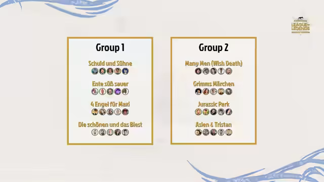 Das League of Legends Turnier startet mit einer detaillierten Vorstellung der Teams und Spieler. Kommentatoren analysieren die Vorbereitung und Dynamik der einzelnen Gruppen, darunter 'Schuld und Sühne' und 'Ente süß-sauer'. Die Diskussion reicht von Champion-Picks bis zu potenziellen Überraschungen. Das erste Spiel zwischen 'Asien und Tristan' und 'Manyman' liefert erste Einblicke in die Teamstrategien und individuelle Leistungen, während sich die Spannung für die kommenden Matches aufbaut.