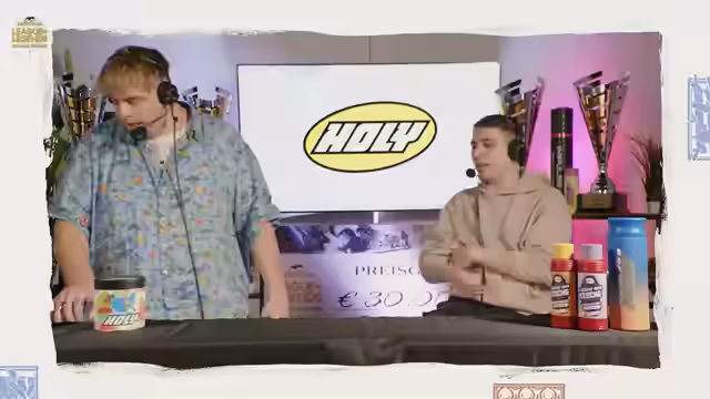 01:54:50Nach einer kurzen Pause, in der technische Probleme behoben wurden, wird Holy als Partner des Turniers vorgestellt. Holy unterstützt das Event mit Preisgeldern und einer Vielzahl von Getränken, darunter Hydration-Drinks, Ice-Teas und Energy-Drinks. Die Zuschauer haben die Möglichkeit, Holy-Produkte bei einem Gewinnspiel zu gewinnen, indem sie das Codewort 'holy' in den Chat schreiben. Zudem wird eine Sonderaktion für das Holy Starter Set Deluxe beworben, bei dem mit dem Code 'Koko' ein Rabatt von 5 Euro erhältlich ist. Der Gewinner des Gewinnspiels hat 30 Minuten Zeit, sich bei einem Mod zu melden, um die Adresse für den Versand des Preises anzugeben. Es wird auch über persönliche Holy-Favoriten und Geschmackserlebnisse gesprochen, um die Produkte ansprechend zu präsentieren.