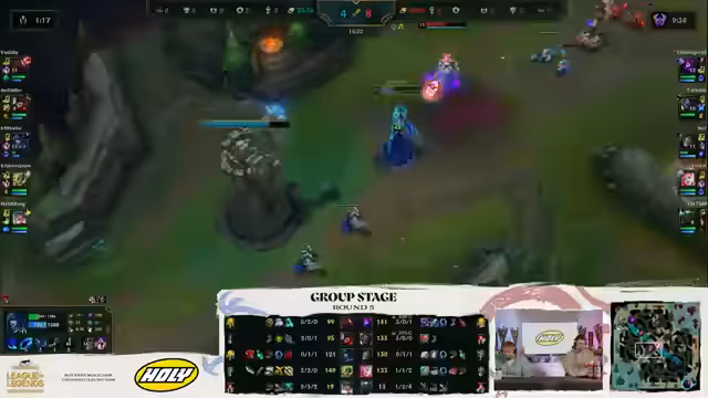 01:07:47Das Spiel beginnt mit intensiven Aktionen, wobei Sola trotz hoher Latenz einen Free-Kill auf Eni erzielt, was Enis fragwürdige Rückkehr ins Turnier unterstreicht. Die Leistung von Chico und Hatschitz wird hervorgehoben, insbesondere Chicos Fähigkeit, schnell auf die Bedürfnisse seines Teams zu reagieren und Edi in der Midlane zu unterstützen. Es zeigt sich eine starke Teammentalität, bei der die Spieler einander als Brüder betrachten und sich gegenseitig helfen. Trotz einiger Schwierigkeiten auf den Lanes und frühen Kills, die das Spiel in den ersten zehn Minuten prägen, bleibt die Spannung hoch. Hatschi steht vor der Entscheidung, ob er für einen Kill all-in geht oder sich auf das Farmen von Turret-Plates konzentriert, was seine strategische Denkweise offenbart.
