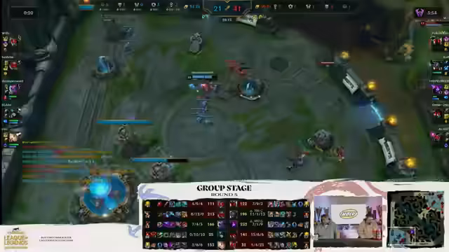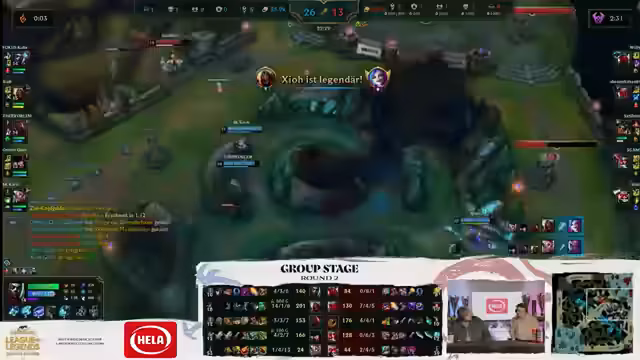 02:23:38Der erste Teamfight um die Voidcroffs wird eingeleitet, wobei die Kommentatoren die Bedeutung von Kills, insbesondere auf der Botlane, hervorheben. Es wird festgestellt, dass die Caitlyn auf der Botlane relativ wenig Leben hat, aber ein Kill nicht erzielt werden kann. Die Situation wird als kritisch beschrieben, da das Team Kills benötigt, um ins Spiel zurückzukommen. Ein Evelynn-Gank auf der Botlane muss erfolgreich sein, um das Blatt zu wenden. Während eines weiteren Teamfights auf der Botlane kommt es zu einem Disconnect von Willi, was die Kommentatoren als unglücklich bezeichnen. Es wird spekuliert, ob es sich um einen Rage-Quit oder technische Schwierigkeiten handelt, wobei letzteres angenommen wird, um eine positive Stimmung aufrechtzuerhalten. Die Pause aufgrund des Disconnects wird als Gelegenheit für das Team gesehen, durchzuatmen und eine neue Strategie zu entwickeln.