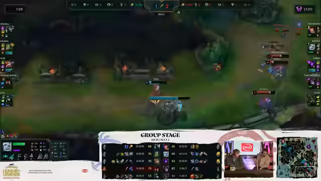 01:00:26Das erste Spiel beginnt, und die Teams "Asien und Tristan" sowie "Manyman" starten vorsichtig mit einer sicheren Vision-Kontrolle des Rivers. Die Kommentatoren betonen, dass dies für beide Teams, insbesondere für die weniger erfahrenen Spieler, eine gute Möglichkeit ist, Ruhe ins Spiel zu bringen. Technische Probleme mit dem In-Game-Sound werden kurz angesprochen und es wird versichert, dass daran gearbeitet wird. Die Toplane-Paarung Garen gegen Mordekaiser wird als schwierig für Garen eingeschätzt, da Mordekaiser in der Regel ein sehr starkes Counter-Pick ist. Trotzdem äußert ein Kommentator Vertrauen in Hachis Garen-Performance, da er viel geübt haben soll. Auf der Midlane sehen wir Malzahar gegen Smolder, wobei Malzahar frühzeitig Mana-Probleme hat und defensiv spielt. Es wird angenommen, dass dies aus Respekt vor Smolders Schaden und Unsicherheit über das Matchup geschieht. Die Botlane mit Kaiser (Renata) gegen Caitlyn wird als undankbar für Kaiser beschrieben, da es schwierig ist, in Trading-Positionen zu kommen. Es wird festgestellt, dass Mitte und Toplane von Team Asien und Tristan langsam ausbluten, während der Jungle und die Botlane die Carry-Positionen innehaben. Ein fehlgeschlagener Gank von Viego auf der Botlane wird beobachtet, und ein hoher Ping von Power of Evil (517 ms) wird humorvoll kommentiert.