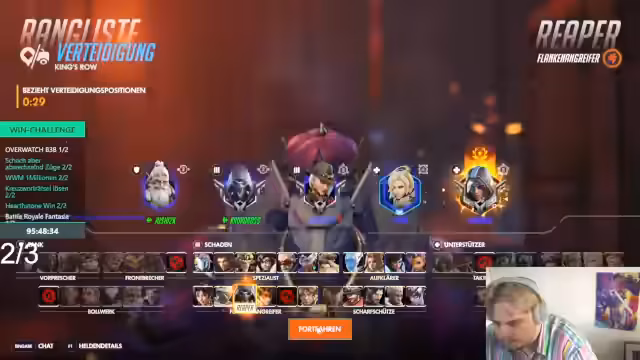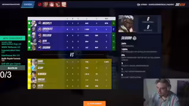 00:29:02Aufgrund der unvollständigen Roster für Valorant wechselt der Fokus kurzfristig zu Overwatch, da das Spiel derzeit kostenlos spielbar ist. Der Streamer ist enthusiastisch über seine Performanz in Ranked-Matches und sieht sich als starken Spieler. Das Team besteht aus Philipp als DPS, dem Streamer, der auch Tank spielen kann, und Kev, der als Tank fungieren soll. Das Ziel ist es, zwei treue Healer zu finden. Ein erstes 5-gegen-5-Spiel beginnt, und der Streamer wirkt durch die komplexen Rollen und Meta-Helden wie Winston bereits überfordert, was zu Frustration und hitzigem Gameplay im Chat führt.