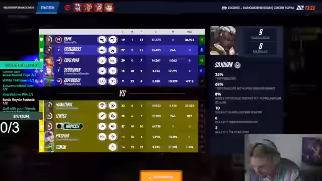 13:13:35Der Stream wechselt zu Overwatch, wo das Team nun in Ranglistenspielen agiert. Das Gameplay ist von hohem Tempo und ständigen Kämpfen geprägt. Es werden taktische Kommandos wie 'Regroupen' und 'Pushen' gerufen, während die Helden wie Reaper und Zarya eingesetzt werden. Die Runden sind geprägt von Siegen und Niederlagen, wobei das Team versucht, Punkte zu halten oder anzugreifen. Die emotionale Beteiligung ist hoch, mit Ausbrüchen von Freude und Frustration über das spielerische Geschehen.