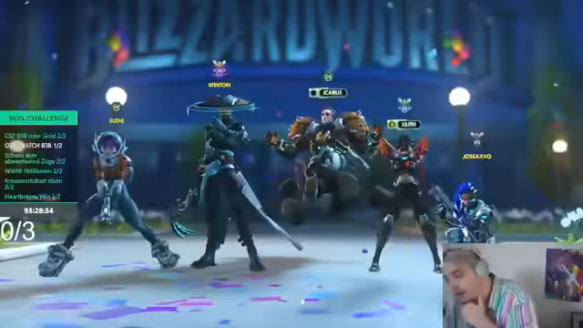 02:49:27Die Runde beginnt mit einem Custom-Game, nachdem ein genügend großer Platz im Match gefunden wurde. Das Gegnerteam wird als Blizzard World identifiziert, was Probleme verursacht. Im Team wird ein Tank mit Reinhardt gewählt, während das gegnerische Team eine Katze und Vendetta einsetzt. Der Streamer stellt fest, dass die neuen Helden sehr kameraorientiert sind und dies das Spiel beeinflusst. Während des Spiels wird ein Pro-Spieler namens Karo vermutet. Der Streamer kommentiert sein Aussehen im Spiel als aus Paul.