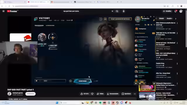 01:07:07Nach dem Spiel gibt es wieder mehr lockere Interaktion. Der Streamer erzählt eine Anekdote über ein verpatztes ARAM-Spiel, bei dem er einen Mitspieler für die Niederlage verantwortlich macht. Er fordert den Chat auf, an einem Quiz teilzunehmen, und unterhält sich über verschiedene Gaming-Themen. Der Fokus liegt auf Unterhaltung und der Pflege der Community-Beziehung.