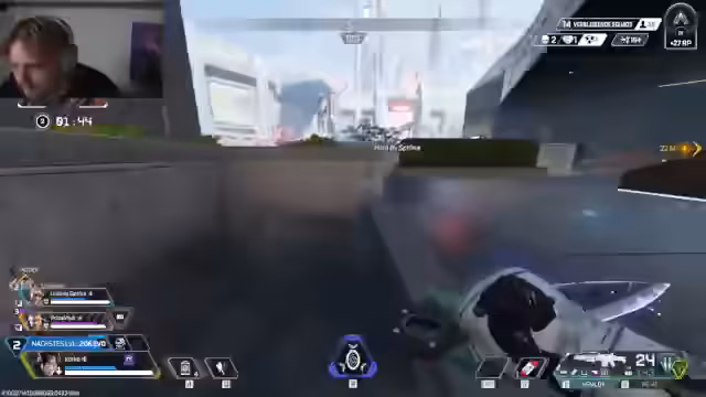 04:22:05Der Stream beginnt mit Fokus auf das Apex Legends Gameplay. Der Streamer navigiert mit seinem Team durch das Spiel, wobei die Kommunikation im Vordergrund steht. Es geht um taktische Entscheidungen wie das Nutzen von Ballons, das Sammeln von Ressourcen wie Spritzen und Eier sowie das Positionieren gegenüber gegnerischen Teams. Die kommentierten Szenen zeigen intensive Kämpfe, darunter das Eliminieren von Gegnern und das Planen von Pushes, wobei der Fokus auf der Teamdynamik und der Anpassung an die aktuelle Spielsituation liegt.