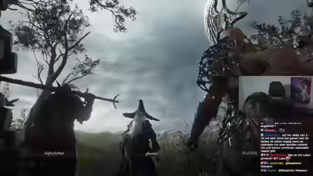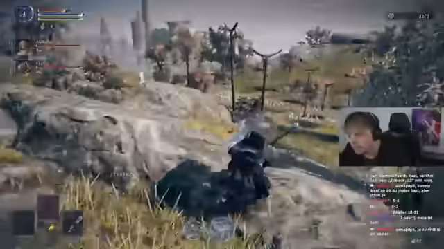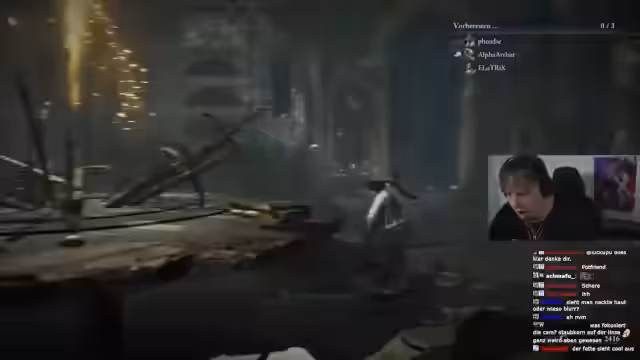 00:54:20Die Expedition beginnt mit der Landung und der Suche nach Ausrüstung. Die Spieler erkunden die Karte, finden Kirchen zur Heilung und Stärkung, und kämpfen gegen normale Gegner, um Runen (Währung) zum Levelaufstieg zu sammeln. Nachdem sie einigermaßen gelevelt sind, stehen sie dem ersten Boss gegenüber. Trotz Teamarbeit und strategischem Vorgehen erweist sich der Kampf als äußerst schwierig, da die Gruppe unterlevelt ist und nicht genug Schaden verursacht. Der Streamer stirbt mehrmals, während die anderen Spieler den Kampf fortsetzen, aber die gesamte Gruppe scheitert letztendlich.