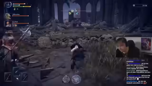 04:23:46Der Stream beginnt mit der Diskussion über die Waffenausrüstung. Der Streamer entscheidet sich für die Nagakiba, da sie als Starter-Waffe gut geeignet ist und Blutungsschaden verursacht. Nachdem er die Waffe ausgerüstet hat, erkundet er die Umgebung und stellt fest, dass er nun ruhelos durch die Gegend laufen muss, was den Start einer neuen Phase des Runs markiert. Gleichzeitig wechseln die Kommentare zur Leistung von Elden Ring auf der PS5, wobei die Empfehlung ausgesprochen wird, die PS4-Version für eine bessere Performance zu spielen.