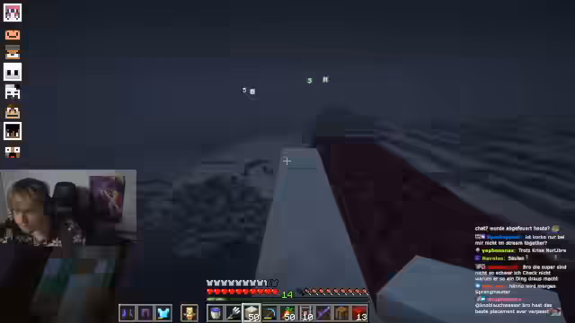 08:56:30Der Streamer und seine Gemeinschaft beschäftigen sich intensiv mit einem komplexen Bauvorhaben in Minecraft. Es geht um eine Redstone-Anlage mit diversen Materialien wie Pistons, Schleimblöcken, Lure, TNT und Korallenriffen. Nach ersten Fehlversuchen und fehlenden Ressourcen gelingt der Start des Projekts. Währenddessen werden Witze und Begebenheiten aus dem vergangenen Stream, wie ein Black-Panther-Cosplay, wieder aufgegriffen. Der Streamer spielt zufällig einen Club-Song, was zu der Idee führt, eine Mod zur Entfernung von Lava und Wasser zu verwenden.