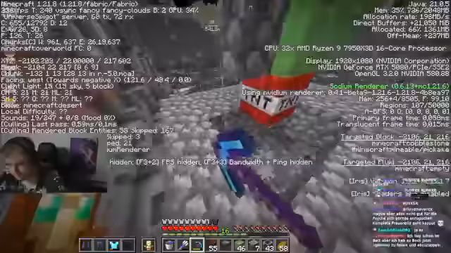 05:14:12Ein weiteres, entscheidendes technisches Problem tritt auf. Die Höhe des Dupers ist kritisch: Er muss 15 Blöcke über dem höchsten Punkt im Loch sein, um sich selbst nicht zu zerstören, aber darf eine bestimmte Y-Koordinate nicht überschreiten, um später die 'Battle'-Phase nicht zu gefährden. Die aktuelle Position erfüllt diese Bedingungen nicht, was einen aufwändigen Umbau des gesamten Dupers erfordert. Der Streamer realisiert, dass die Maschine heute nicht mehr in Betrieb genommen werden kann und plant einen Neustart am nächsten Tag, wodurch der gesamte Zeitplan des Projekts durcheinandergerät.