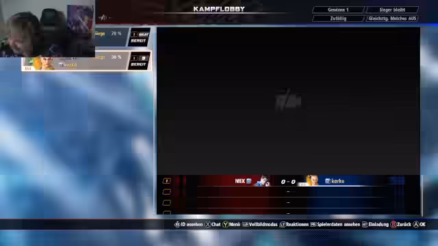 01:12:47Während des Kampfspiels kommt es zu intensiven Auseinandersetzungen mit Kicks und schnellen Bewegungen. Der Sprecher ist frustriert über die Größe seines Charakters und die Schwierigkeit, seinen Gegner zu treffen. Nach der Aufwärmrunde wird beschlossen, die Lobby zu verlassen, um die Charaktere zu wechseln und die Einstellungen anzupassen. Der Sprecher möchte seinen Charakter ändern und fragt nach der Möglichkeit, dies in der Lobby zu tun. Es wird bestätigt, dass man die Lobby verlassen und dann die Einstellungen für den aktiven Charakter ändern muss. Die Spieler bereiten sich darauf vor, neue Charaktere auszuwählen und das Spiel fortzusetzen.