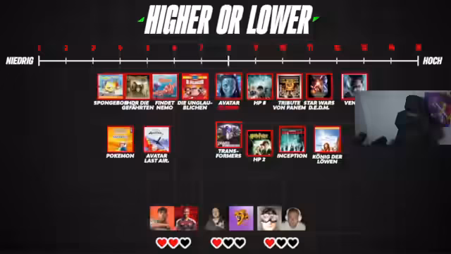 04:01:51Die Teilnehmer wechseln zu einer Kategorie, bei der sie eine Liste von Filmen chronologisch nach ihrem Kinostartdatum sortieren müssen. Die Auswahl umfasst Blockbuster wie Herr der Ringe: Die Gefährten, Findet Nemo, Die Unglaublichen, Avatar und Transformers. Die Runde ist von hitzigen Debatten und falschen Platzierungen geprägt. Ein Teilnehmer gibt an, dass er den ersten Transformer-Film gesehen hat, als er neun Jahre alt war und eine unerwartete körperliche Reaktion darauf hatte.