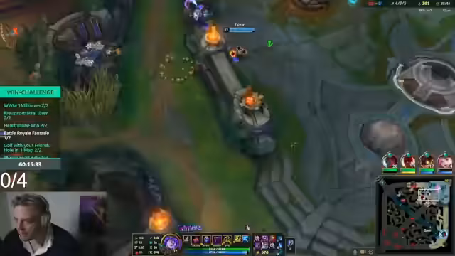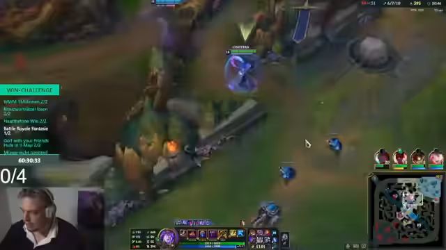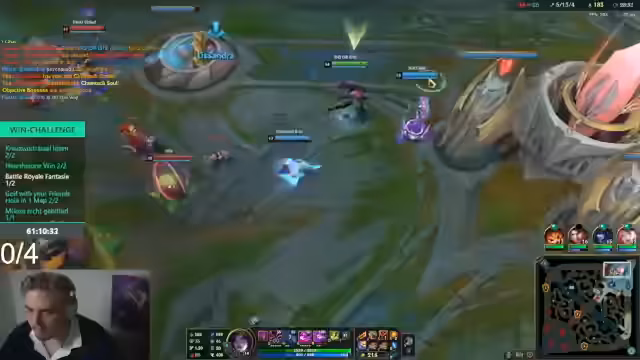08:59:19Das Gameplay von League of Legends steht im Mittelpunkt, wobei verschiedene Strategien und Fehler analysiert werden. Ein Fokus liegt auf dem Überleben gegen stärkere Gegner (Diamond/Master-Spieler), mit dem Leitsatz 'Wir müssen nur überleben'. Das Verhalten eines Mitspielers, insbesondere Philipp, wird kritisiert, da er seine Ultimation nicht einsetzt oder zu spät reagiert, was zum Scheitern von Angriffen führt. Auch die allgemein als 'garstig' (schlecht) bezeichnete Leistung der Gegner in manchen Phasen wird kommentiert.