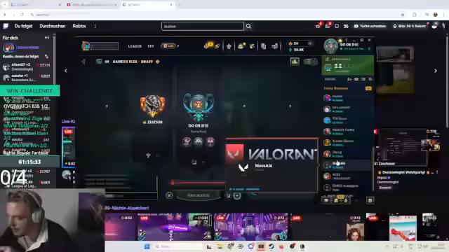 10:16:35Nach dem emotionalen Höhepunkt erfolgt ein plötzlicher Wechsel des Spiels von League of Legends zu Valorant. Die neue Mitspieler-Konstellation wird festgelegt (Philipp, Yoshi, Niro). Gleichzeitig kämpft der Streamer mit erheblichen technischen Problemen. Die Windows-Anzeigeeinstellungen auf seinem Dual-Monitor-System ändern sich unkontrolliert, was das Spielen unmöglich macht. Es wird intensiv versucht, das Problem zu beheben, indem versucht wird, den Spielmodus auf 'Windowed' umzustellen und diverse Tastenkombinationen auszuprobieren.