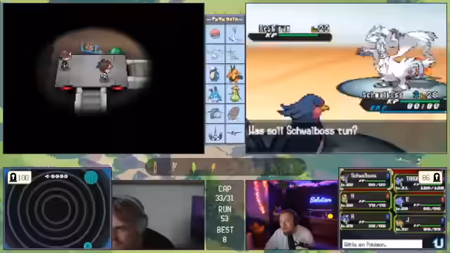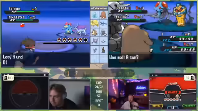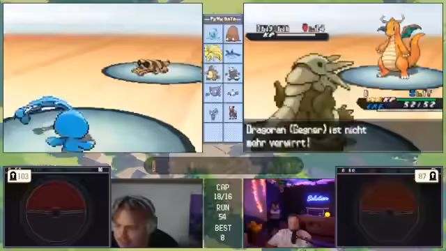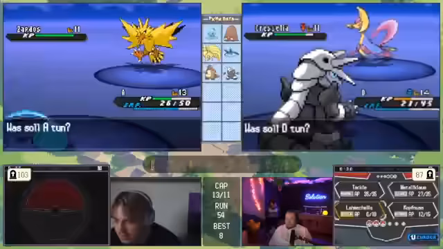 06:15:20Der Fokus verschiebt sich komplett auf ein Pokémon-Spiel. Der Streamer berichtet von einem fortgeschrittenen Run, bei dem sein Team stark ist, aber Schwächen hat. Er analysiert kontinuierlich die gegnerischen Pokémon, um Schwachstellen zu identifizieren und seine Kombinationen anzupassen. Entscheidungen wie der Einsatz von 'Begrenzer' zur Schadensverringerung oder die Tausch-Strategie werden sorgfältig diskutiert, um den laufenden Kampf zu gewinnen. Das Team wird dynamisch verändert, um die gegnerischen Attacken effektiv zu kontern und das Spiel im Griff zu behalten.
