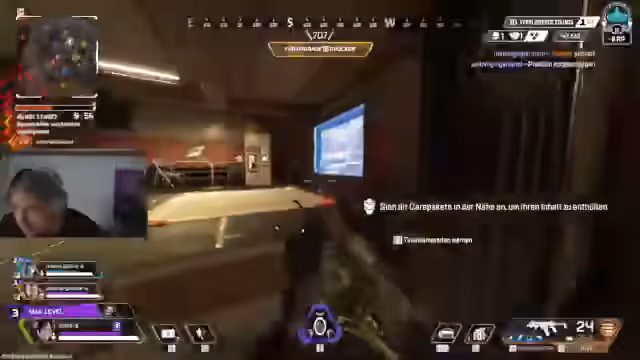 08:12:03Der Fokus verlagert sich komplett auf das Spielen von Apex Legends. Der Streamer analysiert seine Performance und ist über die aktuelle Spielstimmung frustriert. Es werden Bewegungstechniken wie Tapstrafe und Wall Jumps besprochen und erprobt. In den darauffolgenden Rotten arbeitet er intensiv mit seinem Team zusammen, kommuniziert über Ping und strategische Positionen. Das Ziel ist es, die gegnerischen Teams zu eliminieren, während man selbst unter Druck gerät und durch koordinierte Aktionen wie das Platzieren von Portalen und das Snipern der Gegner versuchen muss, das Rennen zu gewinnen.