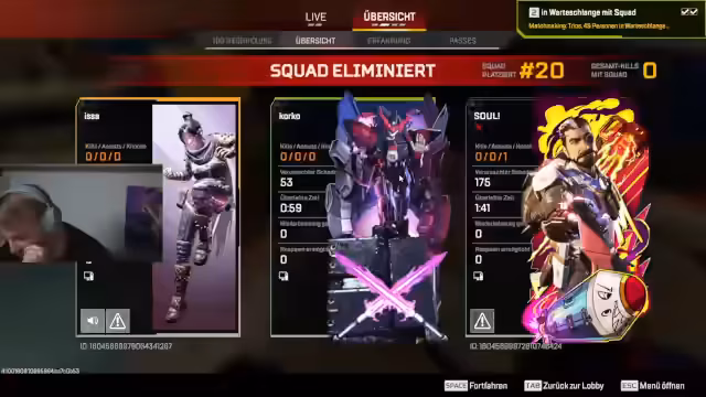 10:55:36Die Runde endet mit einem heftigen Streit zwischen den Teammitgliedern. Es werden extreme Vorwürfe ausgetauscht, und der Streamer bezeichnet sich selbst als 'schlechtesten Spieler, den Apex je hatte'. Die Kritik eskaliert, bis hin zu persönlichen Beleidigungen. Die gesamte Atmosphäre ist vergiftet, und der Streamer empfindet die Situation als respektlos und toxisch, was den Teamgeist massiv belastet.