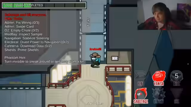 00:28:34Nach einem erheblichen technischen Ausfall, der Monitor, Kamera und Streaming-Software betraf, wird der Stream fortgesetzt. Der Fokus wechselt zu Among Us, einem Social-Deduction-Spiel. Der Streamer startet eine Runde und analysiert das Spielgeschehen. Er äußert sich kritisch über die Performance und das Spielverständnis seiner Mitspieler, insbesondere Eli, den er als „ungenügend als Crewmate“ bezeichnet und dessen Verhalten frustriert.