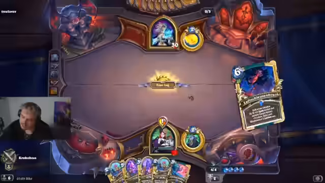 06:00:55Beschreibung einer weiteren Niederlage, die der Streamer auf reines Pech schiebt. Obwohl er vermeintlich einen 'One-Turn-Kill' vorhat, verliert er aufgrund von 'Leichnexplosion' und 'Pyroblast' des Gegners. Die Frustration steigt, als er merkt, dass er vielleicht zurückspulen hätte sollen und das Spiel ihm einen Streich gespielt hat. Das Gefühl des Unlucks ist dominant.