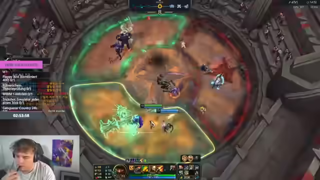 02:55:10Es wird ein Placement angekündigt, das kurzzeitig Geld verdienen soll, bevor zur Challenge zurückgekehrt wird. Der Acheron-Playtest wird erwähnt und die Frage aufgeworfen, ob eine gemeinsame Buchung mit anderen Streamern vorliegt. Die mangelnde Dota-Erfahrung wird thematisiert und die Frage nach dem Dota-Champ gestellt, der zuvor gespielt wurde. Die Sorge vor Tolkien und Obsis in Dota wird geäußert. Die Erinnerung an eine frühere Challenge mit Danny in Dota wird aufgefrischt. Die Erwartung eines einfachen Spiels in Dota wird ausgedrückt. Die Herausforderung in HotS ohne Brücki wird betont. Ein Mastery Pop-Up im Spiel wird bemerkt. Es wird humorvoll festgestellt, dass eine Mischung aus Powerplatte und Faker vorliegt. Die Frage, ob bei einer früheren HotS-Challenge gecheatet wurde, wird aufgeworfen. Die Stärke von Brügge in HotS wird hervorgehoben. Es wird ein kurzer Musik-Swap angekündigt und vor einem Rigged Client und Instant Alistair gewarnt. Probleme mit dem Spielstart und unterschiedlichen Lobbys werden festgestellt. Die Namen der Mitspieler werden vermisst und Kalista als gigabroken bezeichnet. Die Wahrheit über die Spielsituation wird ausgesprochen und das Vertrauen in die Mitspieler betont. Der Wunsch, die Runde zu gewinnen, wird geäußert und die Unterstützung der Zuschauer eingefordert. Die Möglichkeit, im Spiel zu scripten, wird entdeckt und die BASD-Moven als overrated bezeichnet. Die Notwendigkeit, Damage zu verursachen, und die Wahl von Items wie Shrink Ray werden diskutiert. Die Bedeutung von Armor und Health Shard sowie Ability Haste und Ability Power wird hervorgehoben. Die Notwendigkeit, gegen den Gegner mit Golden Spattel nicht zu sterben, und die bevorstehende Runde mit Kalista werden thematisiert.