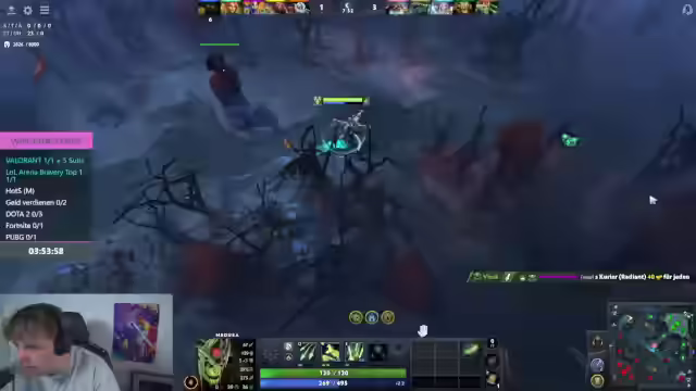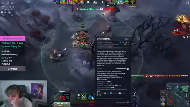 08:45:28Es wird festgestellt, dass das Spiel auf einem Dubai-Server läuft, was zu hohen Pings und Lags führt. Es wird vermutet, dass Freddy dies absichtlich verursacht hat, um länger Dota spielen zu können. Die Auswirkungen der schlechten Verbindung auf das Gameplay werden diskutiert, insbesondere die Schwierigkeiten, präzise Aktionen auszuführen. Im weiteren Verlauf des Gesprächs geht es um spezifische Spielsituationen und Strategien. Es wird die Notwendigkeit betont, den gegnerischen Midlaner zu kontrollieren und die Botlane zu unterstützen. Die Gesprächspartner tauschen sich über ihre jeweiligen Rollen und Verantwortlichkeiten im Team aus. Dabei werden auch taktische Entscheidungen getroffen, wie zum Beispiel das Stunnen von Gegnern und das Ausnutzen von Schwachstellen. Die Analyse der Spielsituationen und die Entwicklung von Strategien zeigen das taktische Verständnis der Teilnehmer und ihre Fähigkeit, als Team zusammenzuarbeiten. Die Diskussion über die Serverprobleme und die Spielstrategien verdeutlichen die Herausforderungen und die Komplexität des Spiels Dota 2.