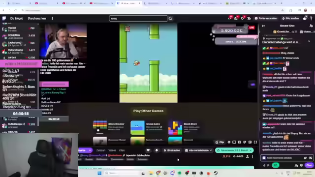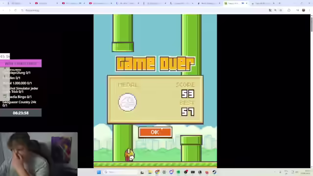 07:30:58Es wird über die Strategie für den Trickshot Simulator diskutiert, wobei vorgeschlagen wird, dass jeder die ersten vier Stages clearen muss und bei Bedarf geholfen werden kann. Der Streamer äußert seine Schwierigkeiten mit Flappy Bird und kündigt eine Pause davon an. Es wird erwähnt, dass GroKo einen Powernap macht, nachdem er mit wenig Schlaf zum Stream erschienen ist. Der Streamer beginnt mit dem Kart-Level im Trickshot Simulator, das sich als besonders schwierig erweist. Es wird über die benötigte Zeit für die Win-Challenge und die Schwierigkeiten bei League of Legends, Kono, PUBG und Fortnite gesprochen. Der Streamer äußert seine Frustration über das Kart-Level und die unzureichende Kontrolle über die Würfe. Es wird über die Perspektive und die Schwierigkeit, die Karten richtig zu platzieren, diskutiert. Der Streamer spielt das Spiel über längere Zeit und äußert seine Verzweiflung und Aggression aufgrund der Schwierigkeit. Es wird überlegt, ob ein Veto gegen das Spiel hätte eingelegt werden sollen. Die Zuschauer werden nach ihren Fortschritten bei Flappy Bird gefragt, und es wird die Strategie besprochen, die ersten vier Level im Trickshot Simulator zu absolvieren. Es wird über die störende Werbung in Flappy Bird und die Schwierigkeit, das Spiel zu spielen, gesprochen.
