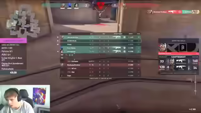 00:30:32Es wird entschieden, mit Valorant zu beginnen, und Flask wird beauftragt, das Wheel zu drehen, um die Bedingungen für das Spiel festzulegen. Es wird vereinbart, dass bei einer Niederlage in Valorant jeder Spieler fünf Subs an die Community giften muss. Die Teamzusammensetzung für Valorant wird besprochen, wobei Kroko und Freddy auf der Botlane spielen. Es wird überlegt, ob Ranked-Spiele gespielt werden können, und es wird nach Mitspielern gesucht, da nicht alle gleichzeitig queuen können. Rico wird als möglicher Mitspieler kontaktiert. Es wird über die Valorant-Fähigkeiten der einzelnen Spieler diskutiert, wobei Kroko seine ADC-Erfahrungen aus League of Legends einbringt. Es wird über Champions, Taktiken und die Schwierigkeit von Valorant gesprochen. Die Map Sunset wird ausgewählt, und es wird über die Rollenverteilung im Team diskutiert. Es wird überlegt, ob die bereits gegifteten 5 Subs ein gutes Zeichen sind oder ob dies ein Indiz für eine bevorstehende Niederlage ist. Es wird über Musikpräferenzen während des Spiels gesprochen, wobei einige Spieler die Musik ausschalten, um sich besser konzentrieren zu können.