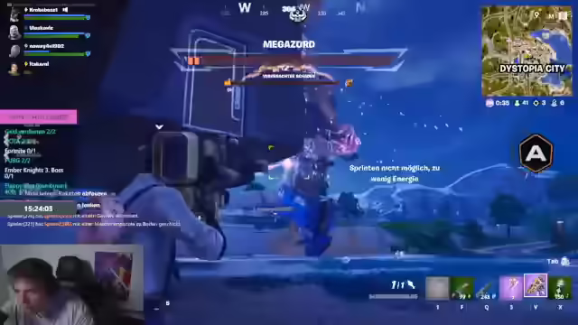 16:13:10Es wird die zwiespältige Meinung über Fortnite diskutiert. Einerseits wird das Spiel als cool bezeichnet, andererseits wird die eigene Unfähigkeit frustriert festgestellt. Es wird anerkannt, dass Fortnite viele Updates und immersive Spielerlebnisse bietet, aber es wird auch gesagt, dass Games mit einer Konstante wie Counter-Strike, PUBG und League bevorzugt werden. Die ständigen Neuerungen in Fortnite, wie neue Items und Map-Environments, werden als zu viel empfunden. Es wird ein Bot getötet und die Notwendigkeit betont, die nächste Runde zu gewinnen, da die Anzahl der Bots abnimmt. Es wird festgestellt, dass man nicht weiß, welcher Loot aktuell gut ist. Eine Käferkanone wird gefunden und eine fancy Kiste entdeckt. Es wird beschlossen, wieder zum Zord zu gehen. Es wird festgestellt, dass man im B-Rang aufgestiegen ist. Es wird sich gefragt, was für Schüsse zu hören sind und ob sich Gegner nähern. Es wird sich gewundert, dass in Dystopia City nicht mehr Leute sind und spekuliert, dass der Megasod alle überraschen wird. Es werden Schlörpifässer gefunden und angeboten. Es wird festgestellt, dass der beste Loot immer nur auf diesen zu finden ist. Es wird überlegt, was zu tun ist, bis der Sort kommt. Es wird festgestellt, dass man keine Energie hat und nur ein Mensch ist. Eine B-Rat-Kiste wird gefunden. Es wird Slurp angeboten und festgestellt, dass der Megasort kommt. Es wird beschlossen, direkt zum Megasort zu gehen und Schaden zu verursachen.