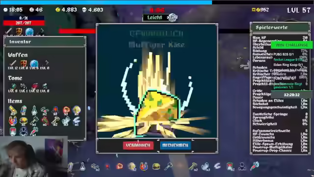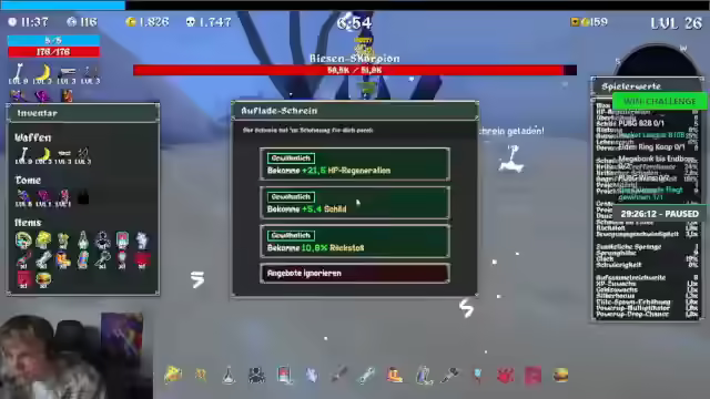 00:06:55Nach einem erfolgreichen Win über Kim, beschreibt er diesen Moment als einen der Top 10 schönsten Momente seines Lebens. Er startet alleine in Megabonk, da Wadim noch nicht da ist. Es werden verschiedene Waffen und Items gesammelt, darunter Magneten und das Drachenfeuer, um sich für den Bosskampf vorzubereiten. Er äußert den Wunsch nach einem vierten Tome und Legendary-Items, um die Schwierigkeit zu meistern. Es wird überlegt, welche Items und Verbesserungen am besten geeignet sind, um gegen den Boss zu bestehen, wobei verschiedene Strategien und Item-Kombinationen in Betracht gezogen werden. Er ist zuversichtlich, dass er gut vorankommen wird und plant, den Boss stärker zu machen und mehr Items zu sammeln. Bei 2:30 will er den Endboss holen.