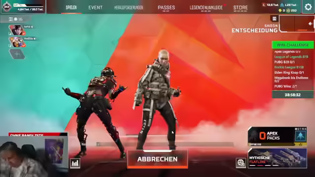 11:53:16Während des Apex Legends Spiels äußert sich der Streamer über das Verhalten seiner Mitspieler, insbesondere Morag und Haji, die seiner Meinung nach zu wenig interagieren und wie Mumien wirken. Er fordert sie auf, aktiver am Spiel teilzunehmen und miteinander zu reden. Er scherzt darüber, Fotos von ihnen nebeneinander zu stellen, da sie wie Mumien aussehen würden. Trotz kleinerer Meinungsverschiedenheiten betont er, dass Gesundheit das Wichtigste sei, gefolgt von SCORB SAD SHOT. Der Streamer erinnert sich an einen PUBG-Sieg zuvor und bedauert das knappe Verfehlen eines Back-to-Back-Sieges, was eine Pause ermöglicht hätte. Er reflektiert humorvoll über seine eigene Erscheinung und die seiner Mitspieler, während er sich auf das Spiel konzentriert. Es folgen hitzige Gefechte im Spiel, bei denen er seine Teamkollegen anfeuert und Anweisungen gibt. Er kommentiert das aggressive Vorgehen eines Spielers und lobt dessen Fähigkeiten, während er gleichzeitig seine eigene Strategie anpasst und versucht, das Team zum Sieg zu führen. Er betont die Wichtigkeit von Teamwork und gibt taktische Anweisungen, um die Gegner auszumanövrieren und die Oberhand zu gewinnen. Der Streamer gibt zu, dass er sich überfordert fühlt und kurz davor war, seinen Monitor nach Geildorf zu werfen, als er während eines Kampfes abgelenkt wurde.