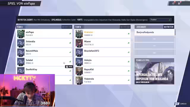 00:07:02Der Streamer begrüßt seine Zuschauer und gibt bekannt, dass das Marvel Rivals Turnier starten soll. Nach technischen Anlaufschwierigkeiten, die ihn daran hindern, sofort zu spielen, erwähnt er, dass sein Teammitglied Kroko bereits im Trainingsbereich war. Der Streamer betont, dass er sich selbst als ruhig und gelassen beschreibt, während er Kroko als aggressiv und kampfbereit charakterisiert. Er ist optimistisch, dass der Turnierstart bald erfolgen wird und bittet die Zuschauer, geduldig zu bleiben.
