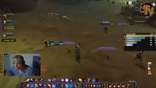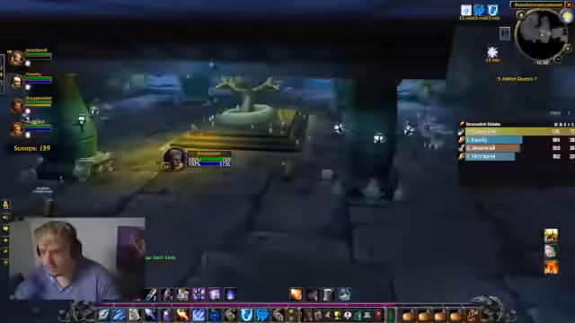 04:00:34Zu Beginn des Streamings befindet sich der Streamer in einem Dungeon und führt seine Gruppe durch das Spiel. Er interagiert intensiv mit dem Chat, erkundigt sich nach Items und kritisiert sein eigenes Spielverhalten. So fragt er nach Wurfraffen und stellt fest, dass seine Addons, wie Leertricks Plus, bestimmte Spielzüge blockiert. Auch beschreibt er die Herausforderungen als Krieger-Tank, besonders die fehlende Wut-Ressource bei Bosskämpfen, was die agro-Generierung erschwert.