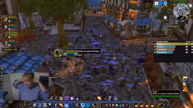 02:07:53Der Streamer plant mit seinem Zuschauer Kroko und anderen Mitgliedern der Gilde einen gemeinsamen Dungeon-Besuch. Sie wollen in die 'Stockades', stoßen aber auf Schwierigkeiten bei der Gruppenfindung und Heiler-Besetzung. Es wird versucht, den Spieler Heiko zu rekrutieren, was zu einem humorvollen Austausch führt.