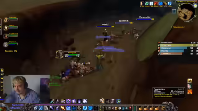 04:50:26Während des Dungeon-Laufs wird die Team-Koordination immer wichtiger. Der Streamer gibt klare Anweisungen zur Positionierung und zum Aggro-Management. So sollen bestimmte Mobs nicht aus dem Raum gelassen werden und die Fähigkeiten der Mages und Priester müssen abgestimmt werden. Es kommt zu spannungsgeladenen Momenten, in denen die Gruppe durch schnelles Handeln und richtiges Timing einem Wipe entgeht, was von der Community gefeiert wird.