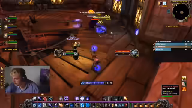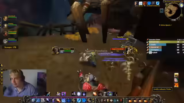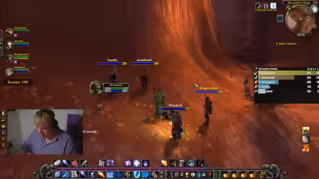 08:56:56Nachdem die Gruppe sich zunächst organisiert und auf die Verwendung von Makros zur Zielerfassung geeinigt hat, beginnt der Angriff auf Elite-Gegner in der Blackrock-Burg. Es kommt zu chaotischen Situationen, als zusätzliche Gegner hinzukommen, doch durch die Überlegenheit im Level kann die Gruppe die Kämpfe ohne Verluste meistern. Besonders der Drache Tabaluga und andere Bossgegner werden nach koordinierten Angriffen besiegt, wobei der Streamer die Wichtigkeit betont, bei Gefahr sofort zu reagieren, um im Hardcore-Modus nicht zu sterben. Nach Abschluss der Kämpfe wird die Gruppe euphorisch über den Erfolg ohne Todesfälle.