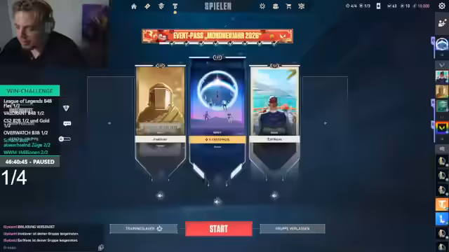 04:02:37Der Stream setzt sich fort mit der Zusammenarbeit mit hochrangigen Spielern wie 'No Way' und 'Freddy', von denen einer als 'rang 1 in Valorant' und 'Pro Player' bezeichnet wird. Gleichzeitig treten technische Schwierigkeiten auf. Philipp kämpft mit seiner Stimme, die 'wieder schlechter' wird, und es wird diskutiert, ob er 4 Spiele hintereinander durchhält. Auch bei Steam treten Probleme auf, da ein Ticket für den Community-Markt nicht erstellt werden kann, was zu großer Verzweiflung führt.