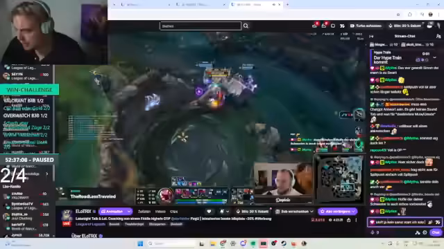05:54:02Nach der intensiven CS:2-Session wechselt der Streamer mit seinem Team zu League of Legends. Der Vergleich mit Basketball-Größen wie Shaquille O'Neal und Kobe Bryant unterstreicht den Ehrgeiz und die Ernsthaftigkeit des Spiels. Die Stimmung ist angespannt, aber die Motivation bleibt hoch. Es kommt zu typischen LoL-Situationen wie Fehlern, gierigen Entscheidungen und dem Gefühl, 'hier wirklich full-blown schlechtes League of Legends' zu spielen. Trotzdem wird der Fokus darauf gelegt, die Challenge fortzusetzen.