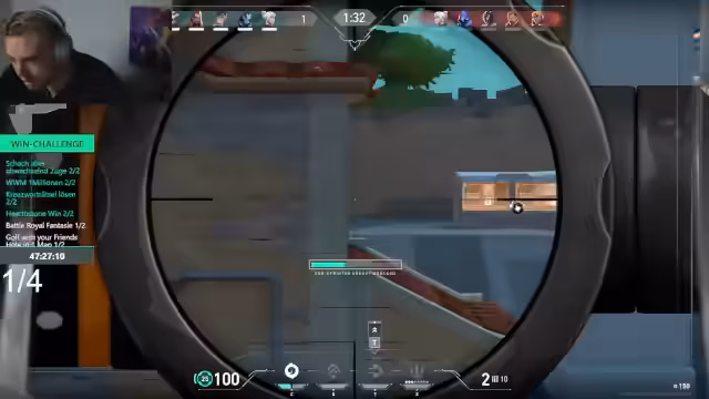 03:50:23Während des Spiels wird ein Verdacht geäußert, dass ein gegnerischer Spieler ein 'Streamsniper' ist. Der Streamer bemerkt: 'Der mit den grünen Haaren ist auf jeden Fall ein Streamsniper. Der läuft die ganze Zeit dahin, wo ich hingehe. Wenn ich A bin, kommt der A.' Diese Erkenntnis führt zu einer veränderten Herangehensweise, um diesen Spieler zu kontern. Das Gameplay wird dadurch noch dynamischer und es wird auf die Bewegungen dieses speziellen Gegners geachtet.