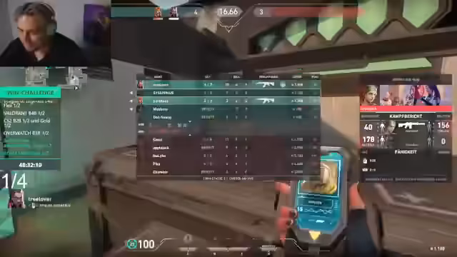 01:23:34Während der Valorant-Runden zeigt sich die dynamische Kommunikation innerhalb des Teams. Der Streamer gibt klare Anweisungen und analysiert die gegnerischen Taktiken. Es kommt zu spannungsgeladenen Momenten, in denen schnelle Entscheidungen gefordert sind. Die Teammitglieder unterstützen sich gegenseitig, auch wenn es zu Fehlern kommt, und bewahren dabei eine positive, motivierende Stimmung, die für den Fortgang der Challenge entscheidend ist.