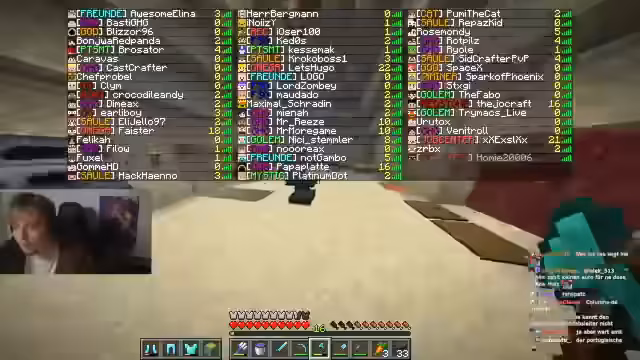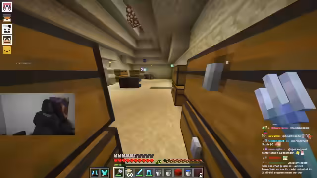 05:29:47Es gibt mehrere Szenen, in denen der Streamer anderen Spielern aktiv hilft. So erklärt er Sydney den Bau einer Froschfarm und zeigt Henno die Funktionsweise einer bereits bestehenden Wolle- und Wolf-Farm. Auch ein Handel über 23 Schleimblöcke wird initiiert. Felika bietet diese an, nachdem sie sie in Trial Chambers erworben hat. Der Streamer ist beeindruckt vom Aufwand und handelt im Gegenzug mehrere seltene Rohstoffe wie Ancient Debris, Gunpowder und eine Music Disc aus, was zu humorvollen Auseinandersetzungen über den Wert der Güter im Chat führt und die wiederum mit einem Clip belohnt wird.