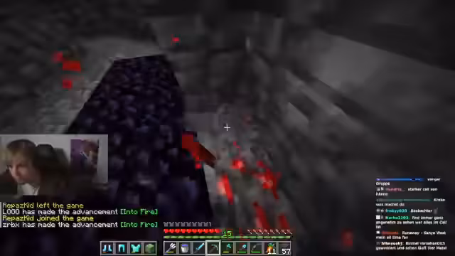 01:50:58Parallel zur Holzfarm wird die Farm von Netherite im Nether fortgesetzt. Es kommt zu Diskussionen über die Effizienz und den Aufwand der Atmung-Technik zum Farmen von Ancient Debris. Dabei streiten sich die Teilnehmer über den Einsatz von Cheats und Merchandise-Artikeln. Kroko muss Redstone farmen, während andere Spieler wie Eli und Hanno bereits volle Bestände an Netherite-Ritualblöcken haben.